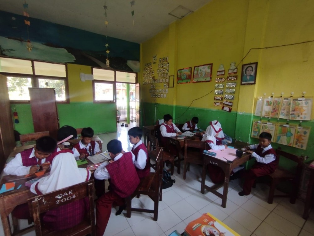 Kegiatan diskusi berkelompok berlangsung aktif dan penuh semangat dengan pendampingan langsung dari Ibu Mery.