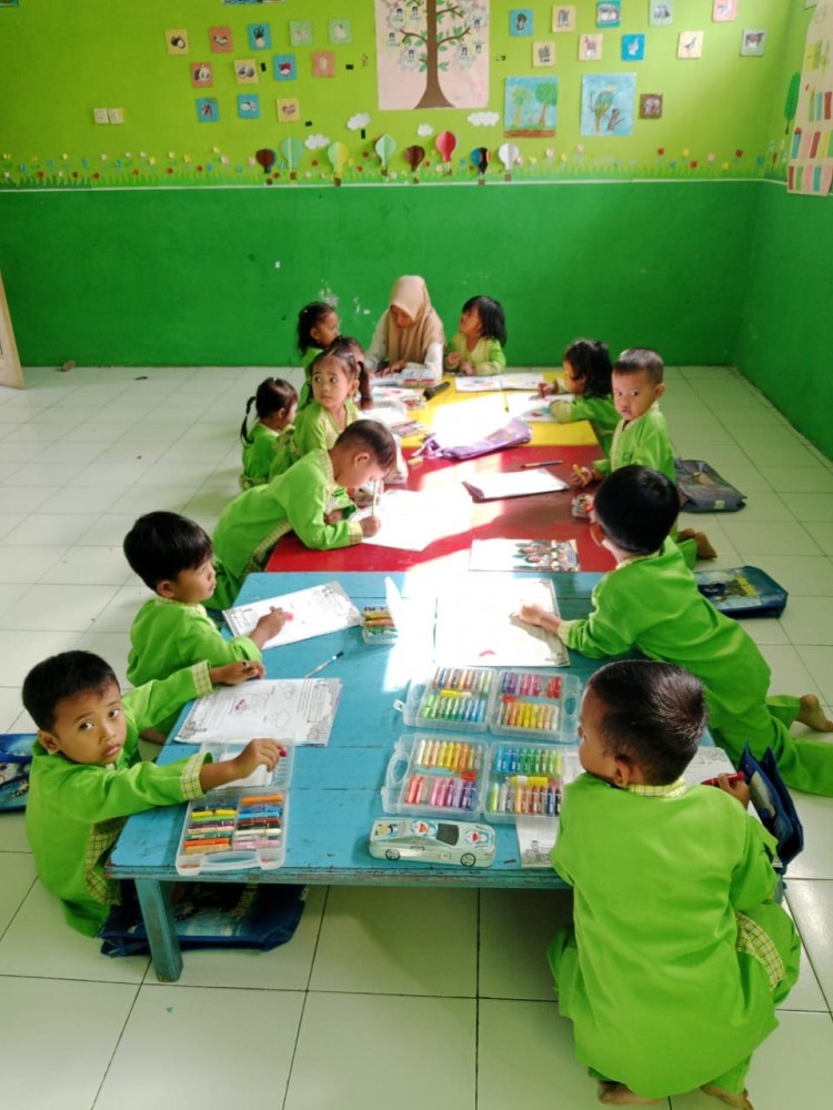 Krasak – Suasana penuh keceriaan tampak di Kelompok Bermain (KB) Kamboja Desa Krasak saat anak-anak mengikuti kegiatan mewarnai yang diselenggarakan di ruang kelas KB Kamboja. Kegiatan ini diikuti oleh seluruh peserta didik dengan didampingi oleh para guru dan tenaga pendidik.