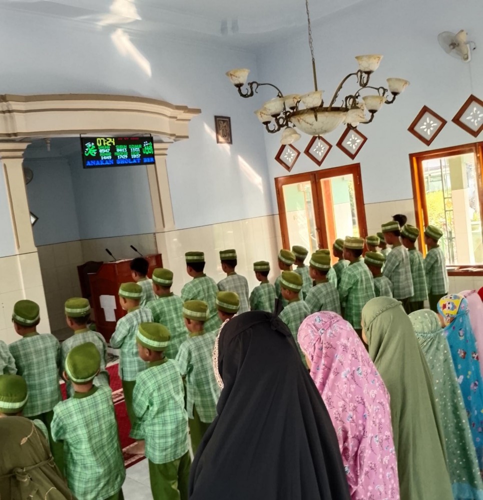 Para siswa tampak tertib dan khusyuk mengikuti ibadah bersama sebagai bentuk pembinaan karakter religius sejak usia dini. Kegiatan ini menjadi bagian dari upaya sekolah dalam menanamkan nilai-nilai disiplin, tanggung jawab, serta kecintaan terhadap ibadah.