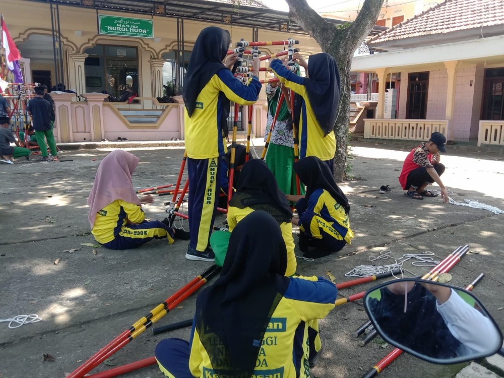 Kegiatan latihan Pramuka santri putri di SMPIT Nurul Huda Desa Krasak berlangsung penuh semangat sebagai persiapan untuk mengikuti lomba Pramuka.