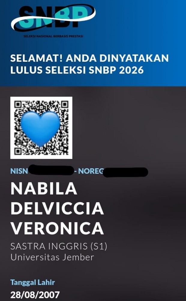 Salah satu di antaranya adalah Nabila Delviccia Veronica, putri dari Bapak Joni, yang berhasil diterima di Universitas Jember dengan program studi Sastra Inggris (Sasing).
