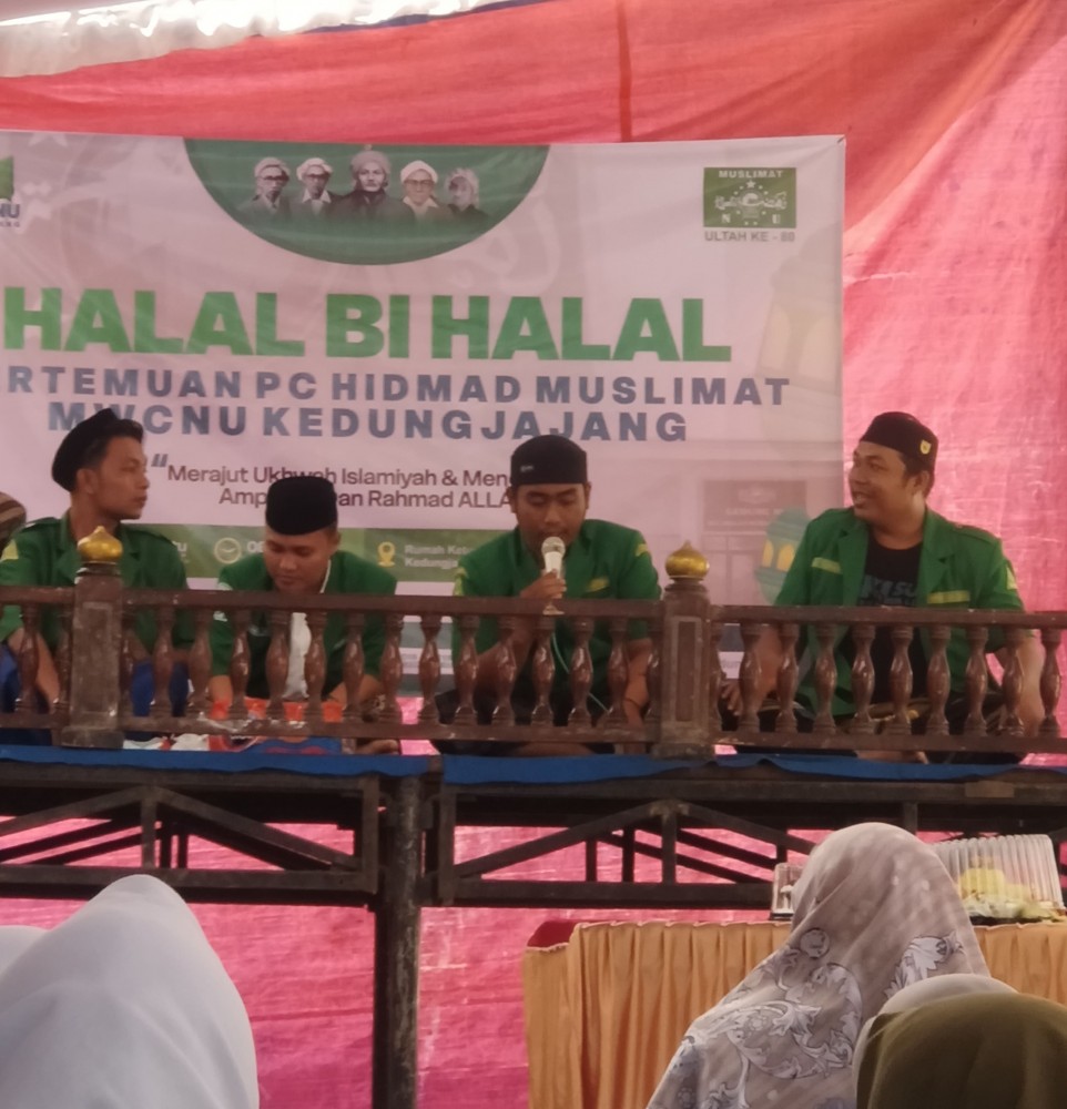 Kegiatan pembacaan sholawat berlangsung dengan khusyuk dan penuh hikmat bersama Ustadz Ribhan dalam acara halal bihalal yang dihadiri oleh PAC Muslimat NU Kedungjajang, PAC Fatayat NU Kedungjajang, dan PAC Hidmat Kedungjajang.